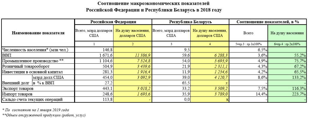 Синхронность изменения ВВП России и Белоруссии, а так же максимальные показатели достигнутые в 2014 г. свидетельствуют о большой степени зависимости экономик наших стран, уровне их интеграции. Любые действия против экономики одной из них оказывают негативное влияние на экономику другой страны. Естественно с учетом масштабного фактора для Белоруссии такие последствия гораздо более негативны чем для России.