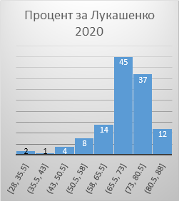 Средний прогнозный процент голосов за Лукашенко 69,90. Стандартное отклонение 10,24.