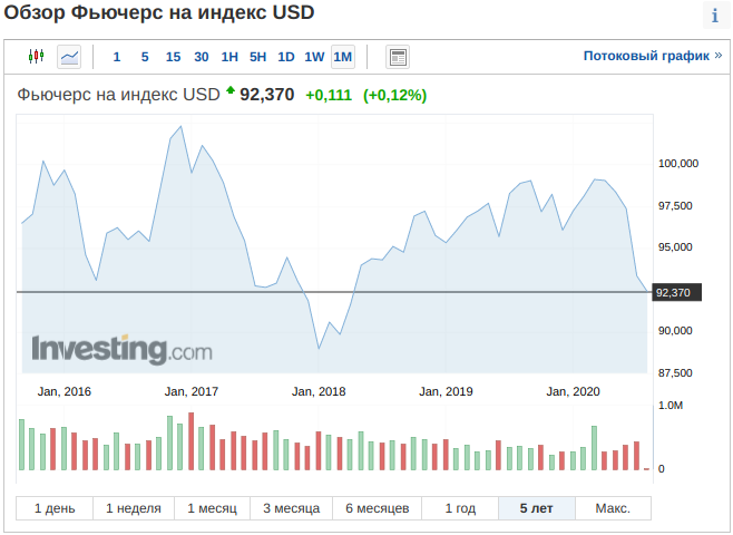 Индекс силы доллара - это как раз соотношение с рядом резервных валют - снизился за несколько недель от 103 до 93. И особо не выравнивается пока.