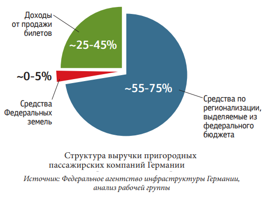 При отсутствии финансовой поддержки со стороны государства в Германии выручки пригородных пассажирских компаний едва хватило бы на оплату стоимости услуг инфраструктуры