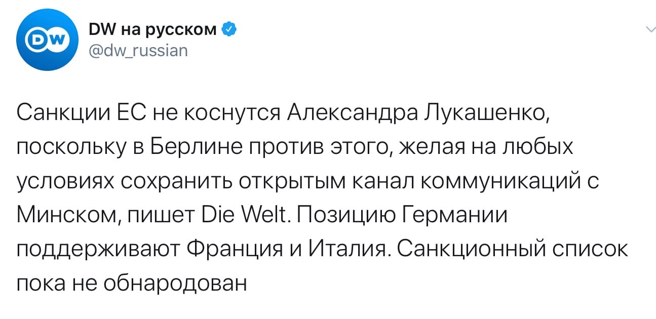 3. Санкций против Лукашенко не будет. Ди вельт сказал.