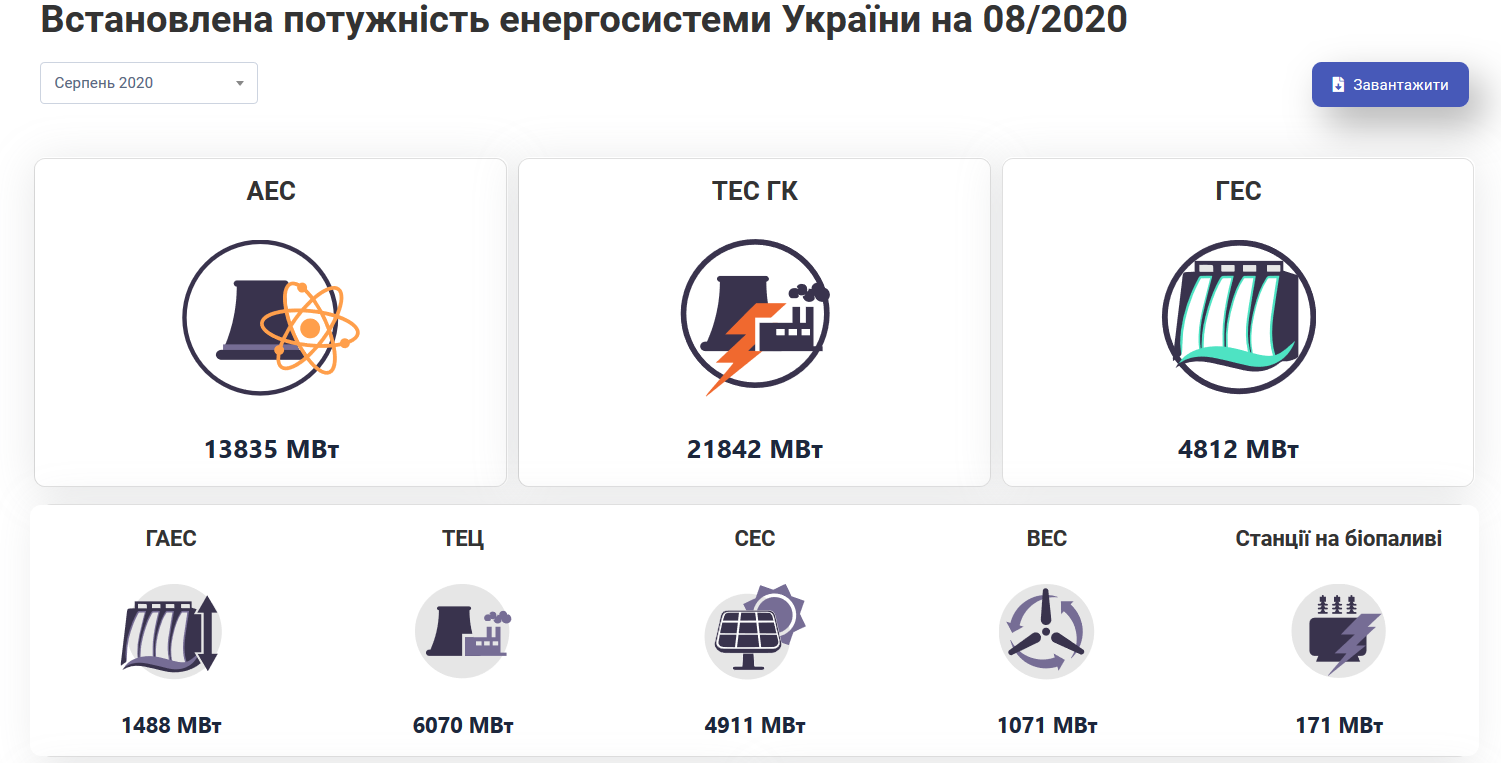 Мощности украинских электростанций на текущий момент приведены здесь
