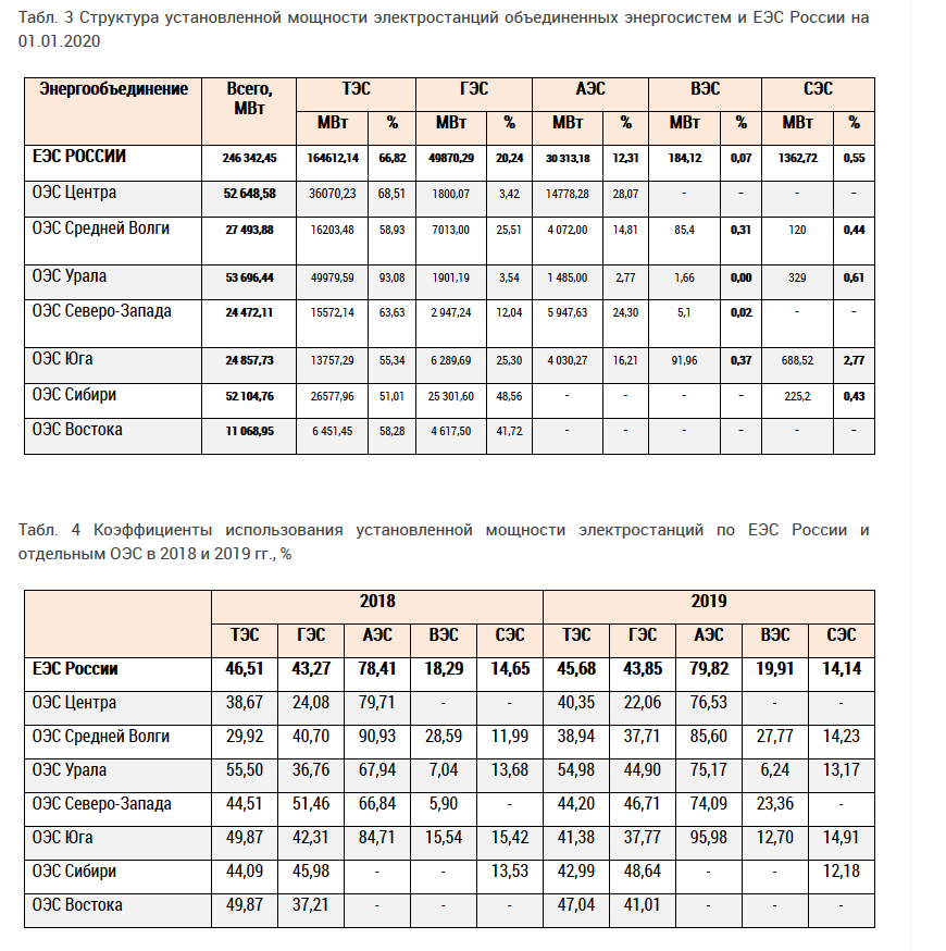 Под спойлером для сравнения КИУМ электростанций в РФ в 2018-2019 годах.