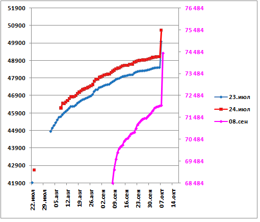 До сегодняшнего дня эти данные уточнялись и число смертей на эту дату корректировалось ежедневно. Я отслеживал эти изменения. Ниже их динамика.