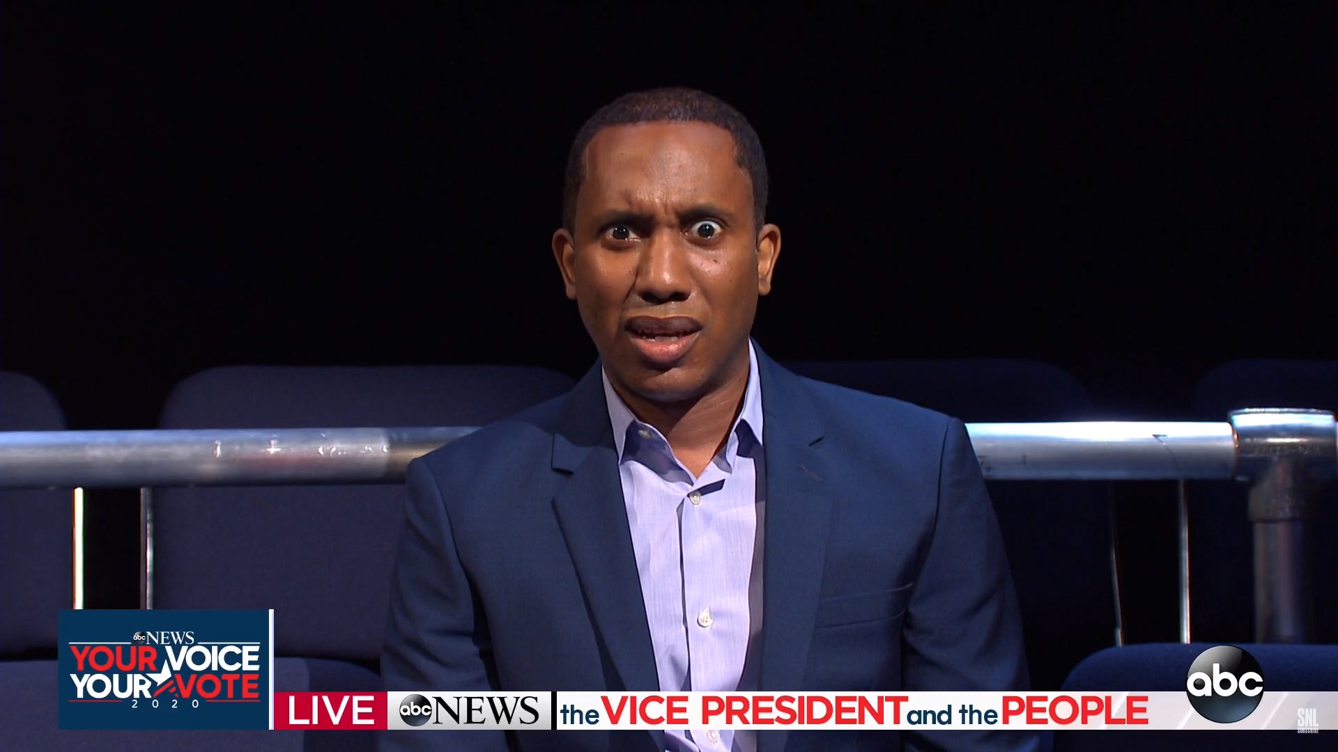 Если найдете меня после этой встречи мы можем поговорить ещё, говит Байден. Ещё??? - отвечает ему удивленный зритель. (в оригинале чёрный парень задавший вопрос действительно скривил рожу, когда его спросили - удовлетворён ли он ответом)