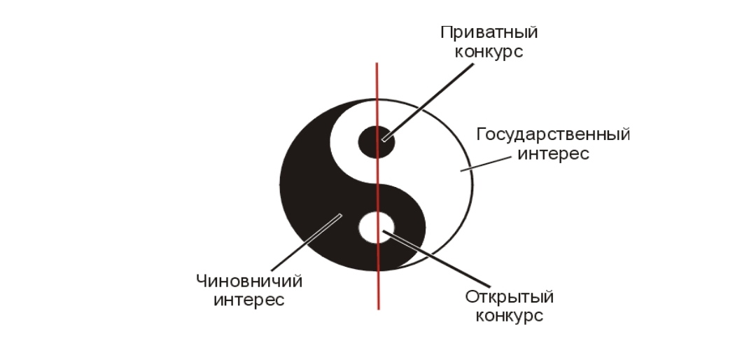 Последнее приводит к тому, что в приватном конкурсе побеждает слабый исполнитель, чиновник при этом перераспределяет заказ в пользу слабого, реализуя при этом свои личные интересы, ослабляя при этом экономическую мощь государства.