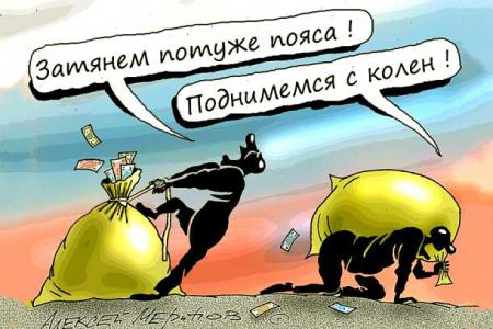 Отвлекаясь от этих высоких идеалов на действительность современной России, мы наблюдаем следующую картину: менее 10% населения можно отнести к среднему классу и выше; две трети — откровенные бедняки и нищие, причем нищими по всем показателям можно называть 40% всего населения страны; треть населения находится за гранью выживания. С другой стороны — 200 человек (из 140 миллионов всего остального населения), чьё совокупное богатство равно совокупному богатству всего остального населения страны. 0,00014% и 99,99986% владеют одинаковой долей из «закромов Родины»!