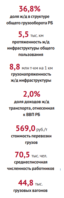 Важность железнодорожного транспорта подтверждается его высокой долей в структуре грузооборота: доля железнодорожного транспорта в грузообороте РФ превышает 45% (без учета трубопроводного – 87,1%), Республики Беларусь – 37% (63%), а Республики Казахстан – 41% (49%).