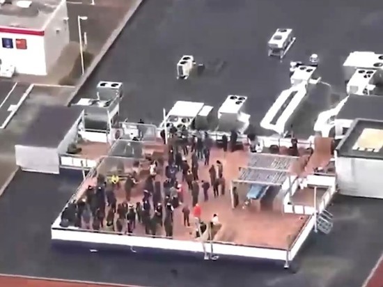 Переданные местными СМИ видеокадры съемки с воздуха показывают, что людей вывели на крышу здания. Что происходит внутри - неизвестно.