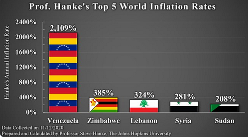 Теперь об итогах В 2014 году инфляция достигла отметки в 63%, в 2015 году — 275%, а с 2016 года наблюдается настоящая гиперинфляция. В сентябре 2020 г. она составила 30%, а с начала года - 1 433,58%. В феврале ЦБ Венесуэлы сообщил, что инфляция в 2019 году в стране составила 9 585,5%. В еженедельном рейтинге института Джона Хопкинса (США) Венесуэла – лидер по росту цен с громадным отрывом (на порядок) от находящейся на втором месте печально известной Зимбабве. Курс боливара 12 ноября был 653.846,15 VES/USD.