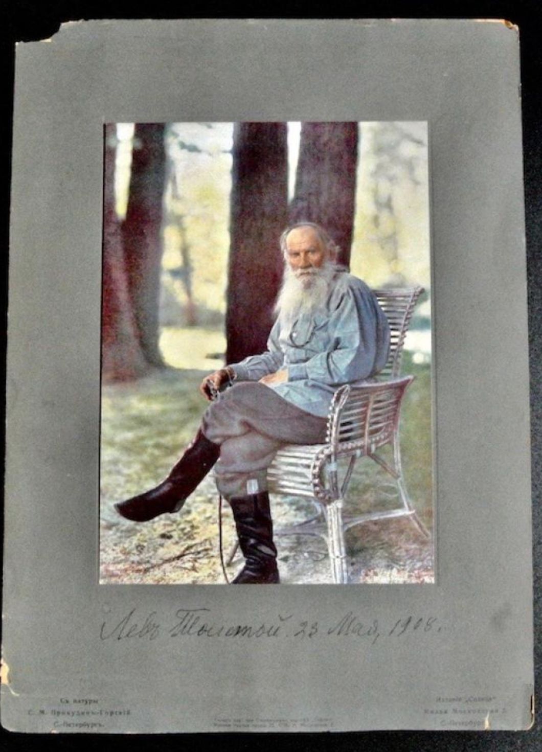 Прокудин-Горский немало имел с открыток и демонстрации слайдов в залах. Например с Львом Толстым известна его фотография.