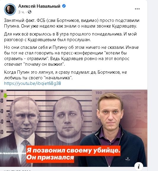 Можно апдейт делать: ЦОС ФСБ заявил, что ролик - провокация, запись - фейк. https://ria.ru/20201221/navalnyy-1590297531.html