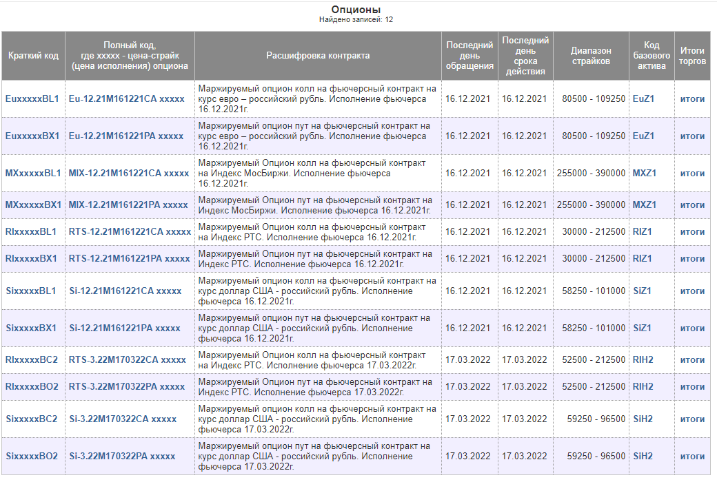 Я в курсе теории процесса и Нассима Талеба. Мне не совсем понятны практические моменты. Я картинку прикрепил с опционами с московской биржи. Можете пояснить, дальний страйк, это когда максимальное значение из диапазона страйков? Ну и что означают два столбца "последний день обращения" и "последний день срока действия"?