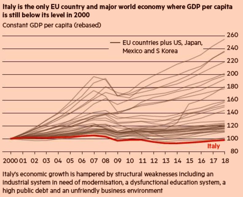 Старение населения и "замена" не рабочей силы а НАСЕЛЕНИЯ "гастарбайтерами" реально же бешенцами, вымывание реальных денег из реальной экономики а не обслуги. Они могут быстро если не вернут лиру и не прекратят беситься вернут бешенцев окажуться на уровне послевоенной Италии без надежды на взлёт ввиду старого и неспособного внешнепривезённого населения.