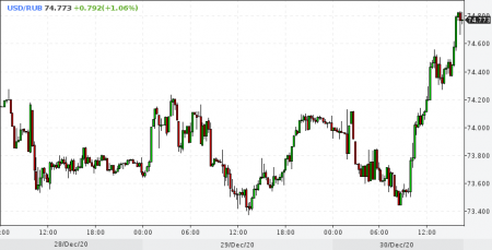 Рубль остаётся в коридоре между 72,5 и 76 и пока признаков его выхода оттуда не видно. Ну и наступает год выборов в ГосДуму - и без эпического форс-мажора валютный курс будут и поддерживать, и укреплять. Для того и дают убежать вверх - потом рост будет выглядеть получше. Впрочем, это всё распотякивания. Ключевая ближайшая дата - это 6 января, верификация президентского голосования выборщиков. Как дальше поведёт себя доллар - от этого будет зависеть и реакция мировых валют - включая рубль. Ну а пока в евро аналогичные события: