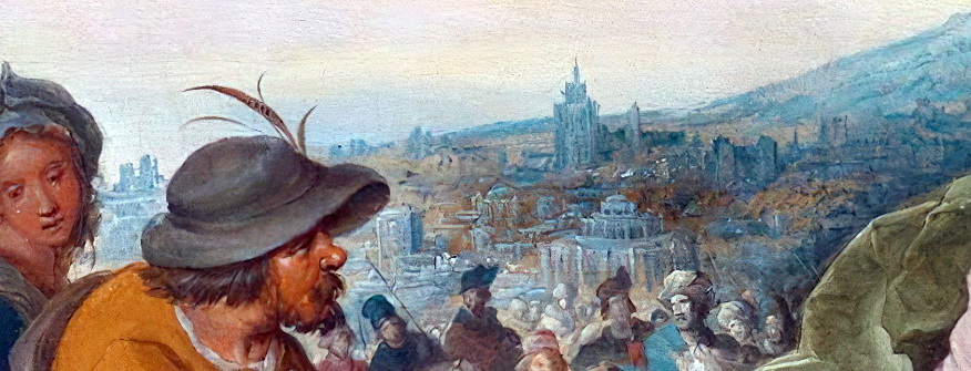 Заморочился первоисточником - 1622_Несение креста (Christ carrying the cross)_54,5 x 76,5_д.,м._Частное собрание. После небольшой обработки и цветокорректировки, действительно домики впечатляют. Многоэтажная застройка от, примерно, 5 до 12 этажей. 1622 г.