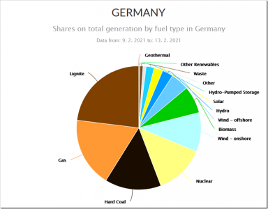 На этих картинках показано все, что нужно знать о зеленых мриях - здесь расписано, какую долю генерации обеспечили в Германии различные источники с 9 по 13 февраля, когда энергия была нужна по-настоящему - ибо без нее многие бы замерзли насмерть.