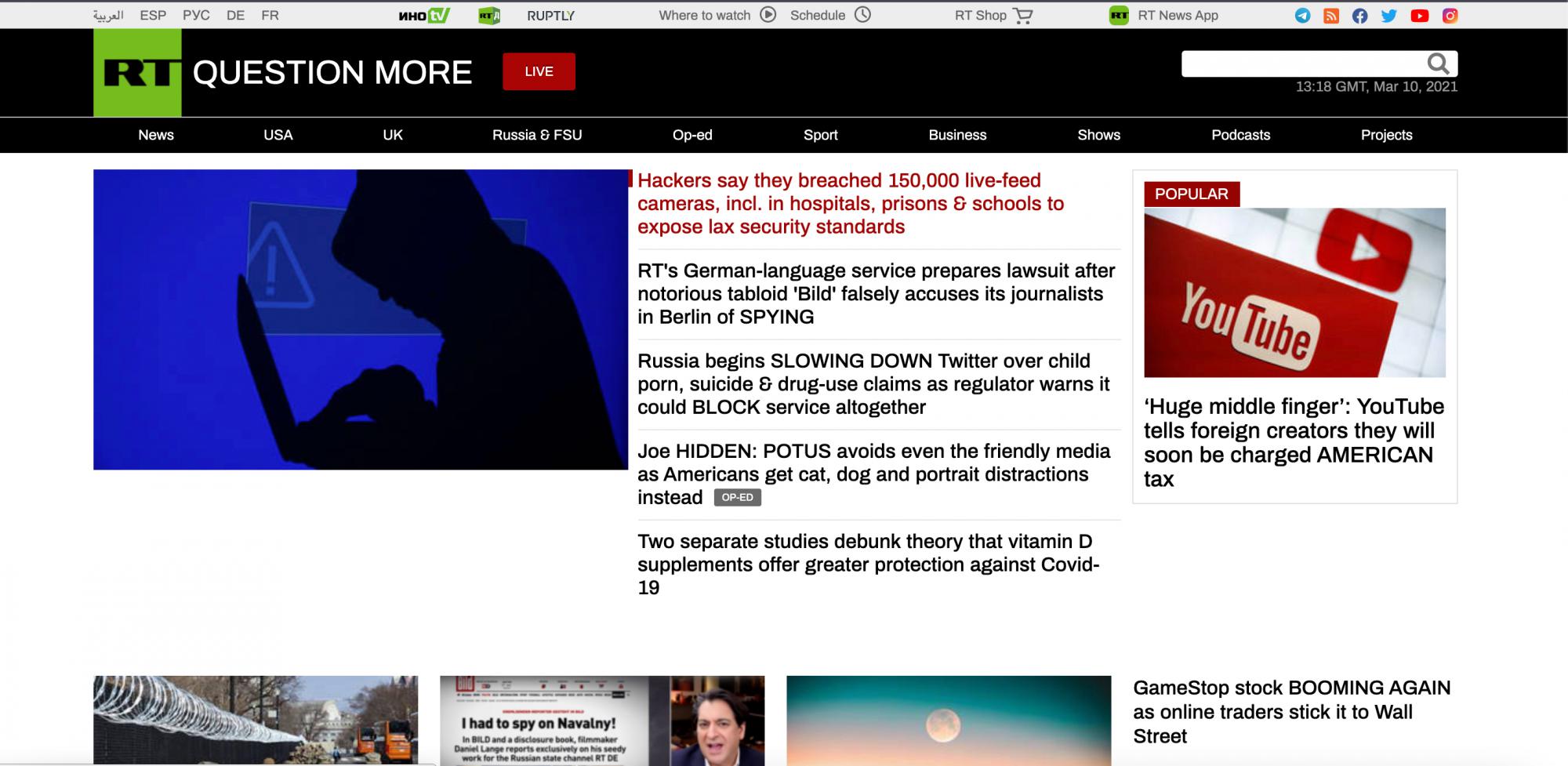 желающие проверить могут зайти на https://www.rt.com/