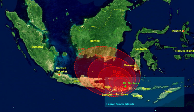 Любой вулкан спит и видит, чем бы прославиться. Тамбора не исключение. А чем может прославиться вулкан? Конечно же, извержением. И чем оно мощнее, тем славы больше. В апреле 1815 года вулкан Тамбора устроил грандиозную встряску всему миру. Копившаяся тысячи лет внутри вулкана магма с огромным грохотом вырвалась на свободу. Мощнейшее извержение потрясло в прямом и переносном смысле всю планету, причинив колоссальный вред человечеству.