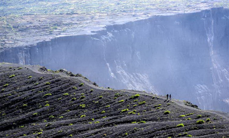 2 человека на краю кальдеры вулкана Тамбора. Почувствуйте масштаб