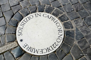 Кружочки на полуденной линии отмечают вхождение тени от обелиска в знаки зодиака, т.е. месяцы. Получается годовой календарь движения Солнца по знакам зодиака.