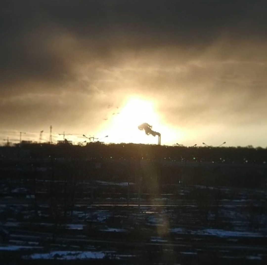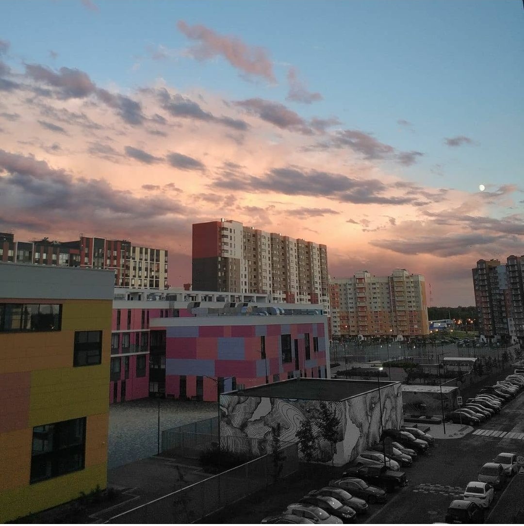Микрорайон небольшого городка на Урале. Картина бегущих облаков меня просто потрясла и я сразу схватился за смартфон. Строй чудовищно больших бомбардировщиков, подумалось мне. Потом вспомнился известный фильм по Стивену Кингу, про лангольеров.