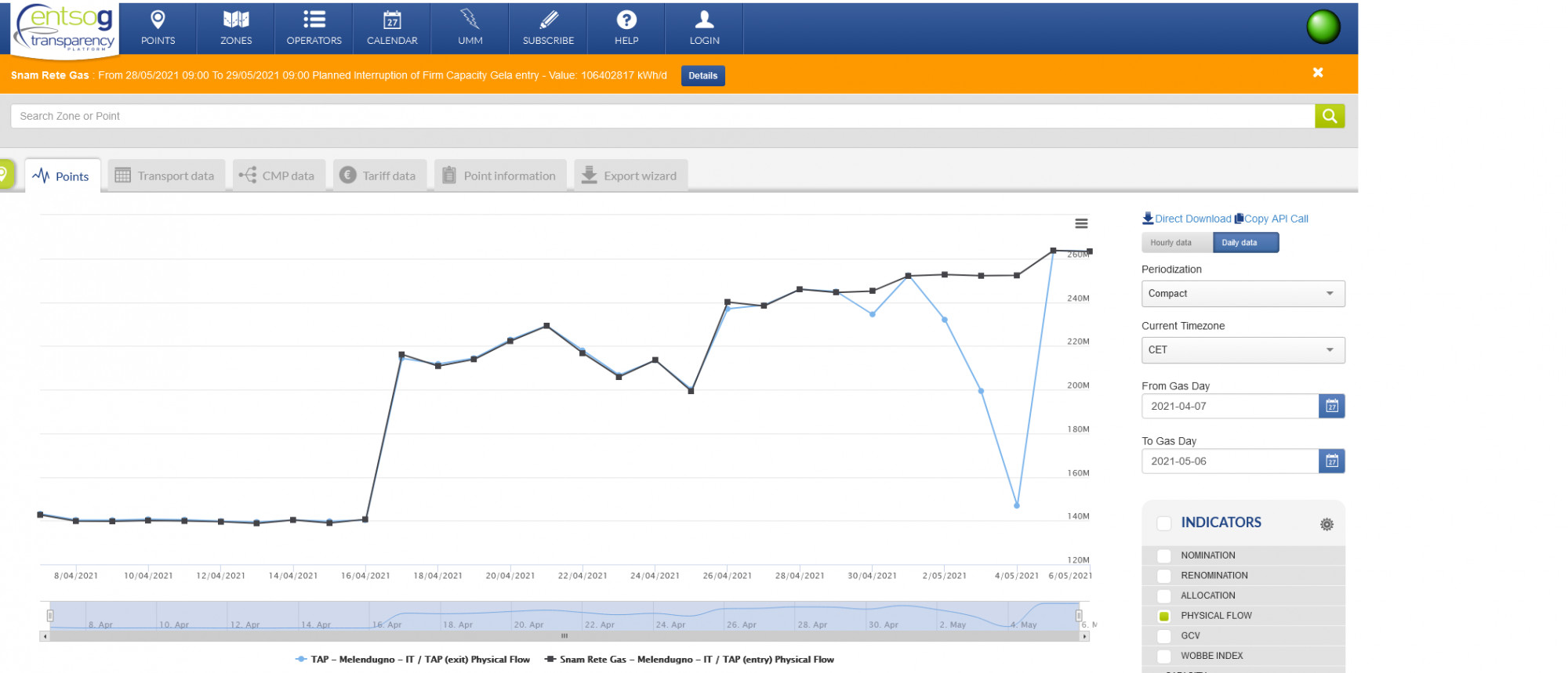Объемы прокачки по TAP выросли с 16 апреля почти вдвое. Прокачка 263 млн КВтч в сутки соответствует указанным в статье 22-23 млн куб м в сутки. Или в годовом 8 млрд кубов.