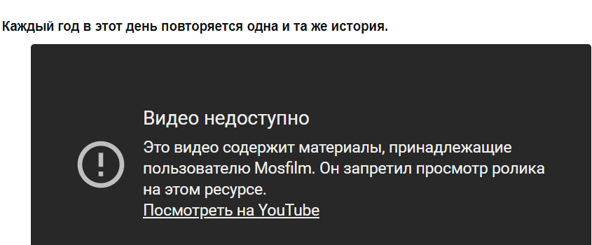 Без понятия - кому там что принадлежит ) И написанное латиницей имя Mosfilm - это может быть вообще кто угодно, даже не имеющий отношения к Мосфильму. А песня хорошая! Но Ютуп всегда ищет, как подгадить.