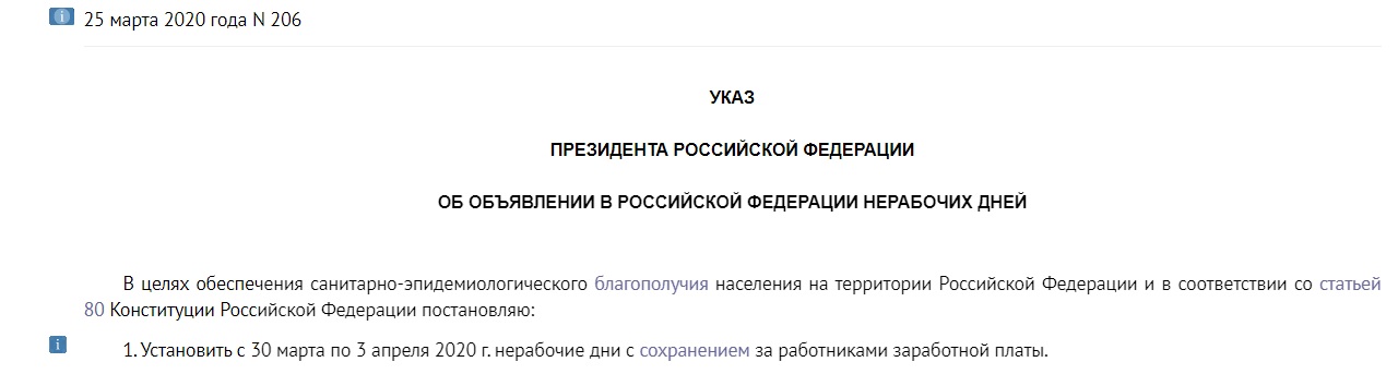 Да, был. "Самоизоляция" в РФ была введена начиная с последних выходных марта 2020. То есть за весь 1 квартал 2020-го было 2 отменённых рабочих дня. Вот указ Путина, для предотвращения приступов "забывчивости" в комментах :