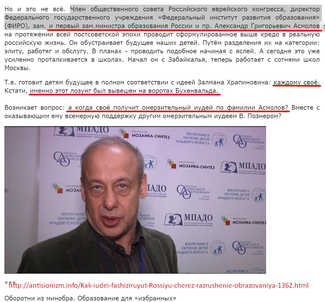 Интересно - они заметили как ПЕДАГОГИКА у них была заменена на ПЕДОЛОГИЮ, и ещё - у них свой иудей Асмолов был, который с самых начальных ЕБНевских времён, с "коллегами" из Исраильщины, убивал лучшее в мире образование - или своих ТВАРЕЙ хватило?