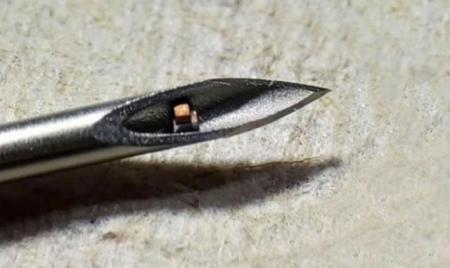 Микросхема размером с пылевого клеща видна только под микроскопом.