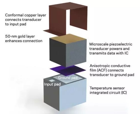 Скорость звука же намного меньше скорости света, поэтому исследователи включили в микросхему пьезоэлектрический преобразователь, который работает как антенна для беспроводной связи и питания устройства.