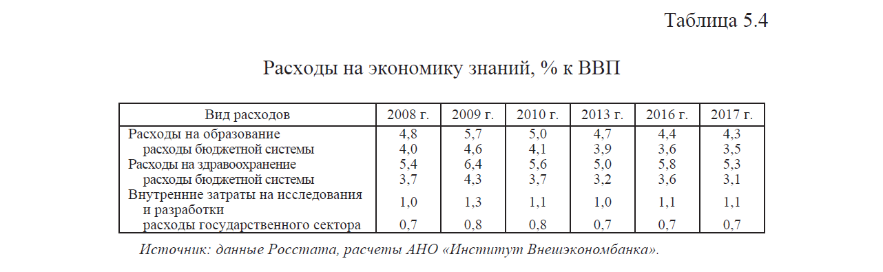 13. Доля сектора развития человеческого капитала (образование, здравоохранение, исследования и разработки) в структуре ВВП на протяжении последних пяти лет сохраняется на уровне 5,7%. По показателю добавленной стоимости сектора человеческого капитала в ВВП Россия незначительно отстает от уровня стран Балтии, а от передовых стран – в 2 раза. Необходимо кратно увеличить финансирование здравоохранения и всей сферы экономики знаний, которые в России по доле в ВВП в 2,5 - 3 раза уступают ведущим экономикам мира. С 2020 по 2025 г. требуется увеличить удельный вес в ВВП вложений в здравоохранение с 5 до 6,5%, НИОКР – с 1,1 до 1,7%, образования – с 4 до 5,5%, что потребует ежегодно не менее 2 трлн. руб. или 13-процентного роста совокупного объема вложений.