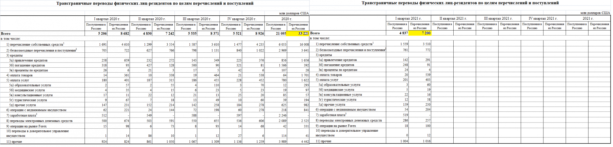 что из $11,035 млрд переведенных в 2020-м году в страны СНГ нерезидентами было выведено всего $4,676 млрд. Остальные $6,359 млрд были выведены резидентами (подозреваю, что в основном бывшими гражданами других стран СНГ, получившими российское гражданство).