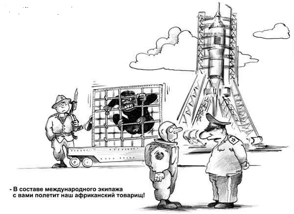 Прикольно будет после совместного полёта на орбиту посмотреть на негра с синими руками.