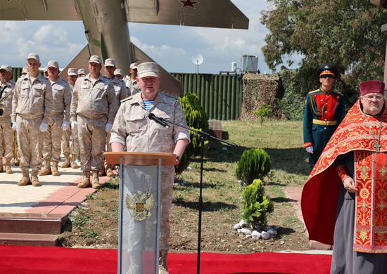 В церемонии открытия и освящения памятника приняли участие командующий группировкой войск Вооружённых Сил Российской Федерации в Сирии Герой России генерал-полковник Андрей Николаевич Сердюков, личный состав авиабазы и представители Вооружённых Сил Сирийской Арабской Республики.