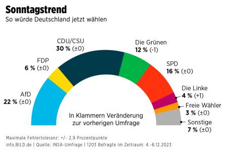 Однако, как пишут журналисты BILD Томас Блок и Роман Айхингер, канцлер одновременно получил «аплодисменты от товарищей и пощёчину от избирателей». По данным последнего опроса социологического института INSA для BILD, рейтинг СДПГ остаётся на низком уровне в 16%, а правящую «светофорную» коалицию во главе с Шольцем поддерживают лишь 34% граждан. При этом личный рейтинг канцлера составляет лишь 23%, а 69% опрошенных недовольны его работой.
