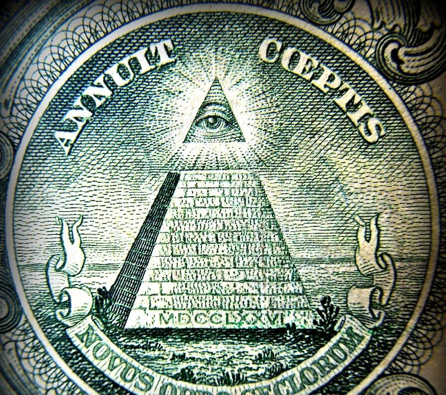 А, это масонская бутылка. В нее если через горлышко смотреть то как раз оно самое. На баксах США оно даже в цвет бутылки