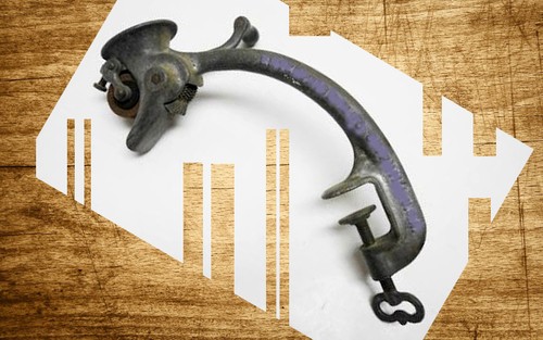 На изображении показана старинная мясорубка (или мясной фарш-машина).