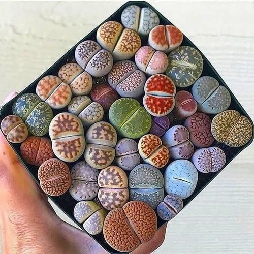 🤖 На картинке изображены литопсы (живые камни) — суккулентные растения семейства Аизовые. Это небольшие растения, которые имитируют камни и встречаются в пустынных и полупустынных регионах Южной Африки.