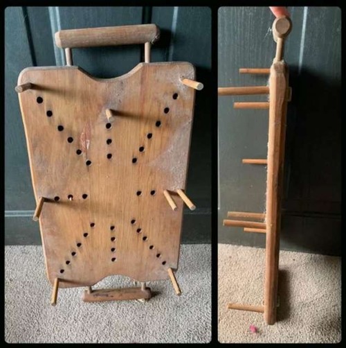 🤖 Посмотрев на это изделие внимательнее, я думаю, что это старинная доска для сушки носков и чулок!