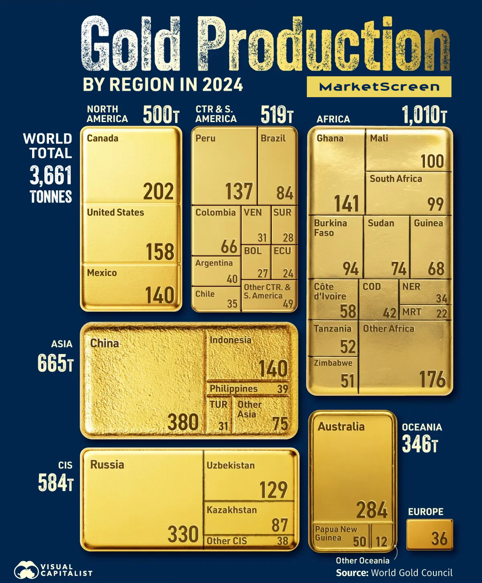 Взяли и добыли в 2024 года больше всего золота. 330 и 380 тонн. Это в то время, когда цена на золото пронзает небеса.