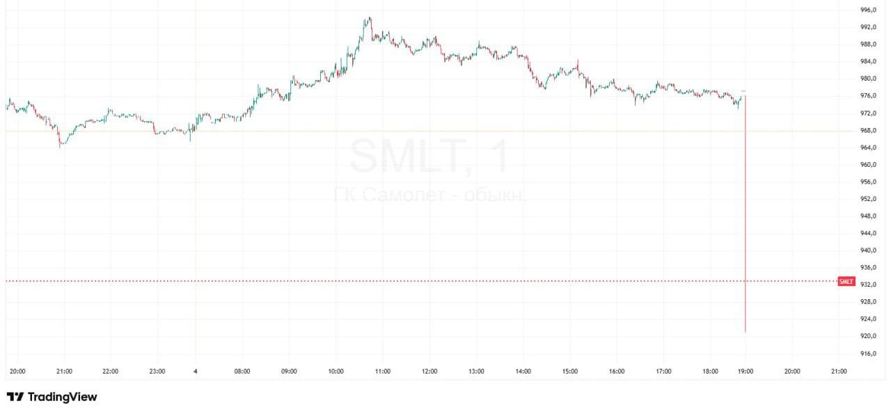 Акции застройщика падают вниз на 5%. За два года акции «Самолета» упали на 75%.