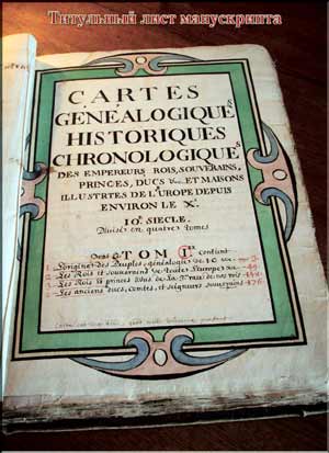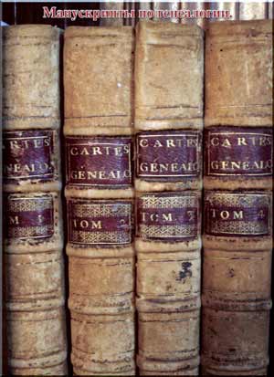 Например, в уникальном манускрипте по генеалогии в четырёх томах (Рис.7 и Рис.8), включающем в себе все сведения обо всех императорских, королевских и аристократических фамилиях Европы (и не только) со времён античных до конца XVII века н.э. включительно. Это единственный и наиболее полный манускрипт по генеалогии, в котором не только прописаны подробно все правящие династии Европы, Азии и Северной Африки, но и даётся информация по странам, их столицам и т.д. (Рис.9).