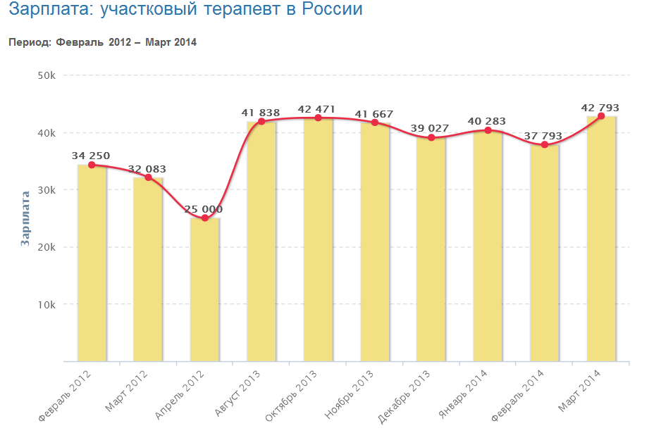 Это вот эти ваши большие зарплаты? Кстати, участковым терапевтам вынуждены были поднять зарплаты пару лет назад. А знаете почему? Да на эту работу никто не шел! Дифицит терапевтов! А Вы если не ходите в больницу и лечитесь по методу Малахова лыжной мазью, то на врачей не гоните. В тех суммах, что на картинке окладная часть 20000, остальное премии, которые главный врач может дать, а может не дать. И когда Путин с голубого глазу вещает, что резаться ничего не будет, то главный врач воспользовавщись ситуацией оежет. А потом сиди и думай, глядя в квиток, почему тут меньше, а у него новая мебель в кабинете.