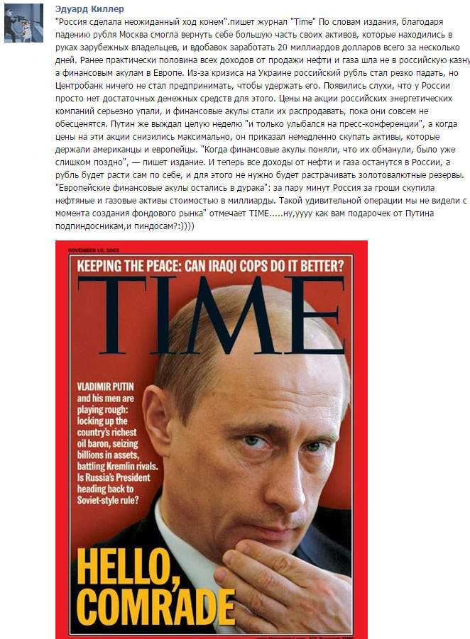 "Россия сделала неожиданный ход конем"...пишет журнал "Time" в 2003 году