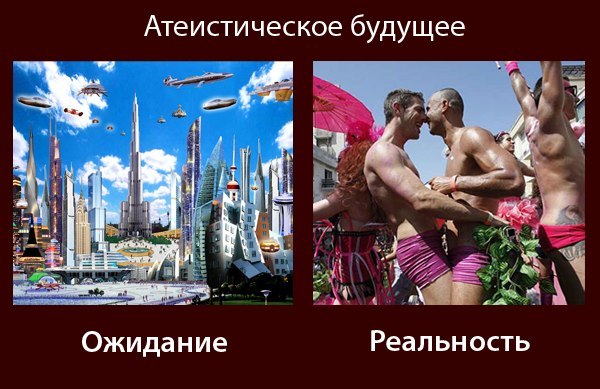 Картинка глупая совсем. Мы в СССР почти все были атеистами и засилья заднеприводных не было, как нынче, их, вообще, видать не было. То есть всё совсем наоборот, это теистическое будущее.
