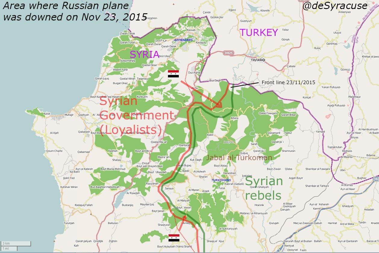 Карта нашего МО, из которой видно, что СУ-24 границу Турции не пересекал.