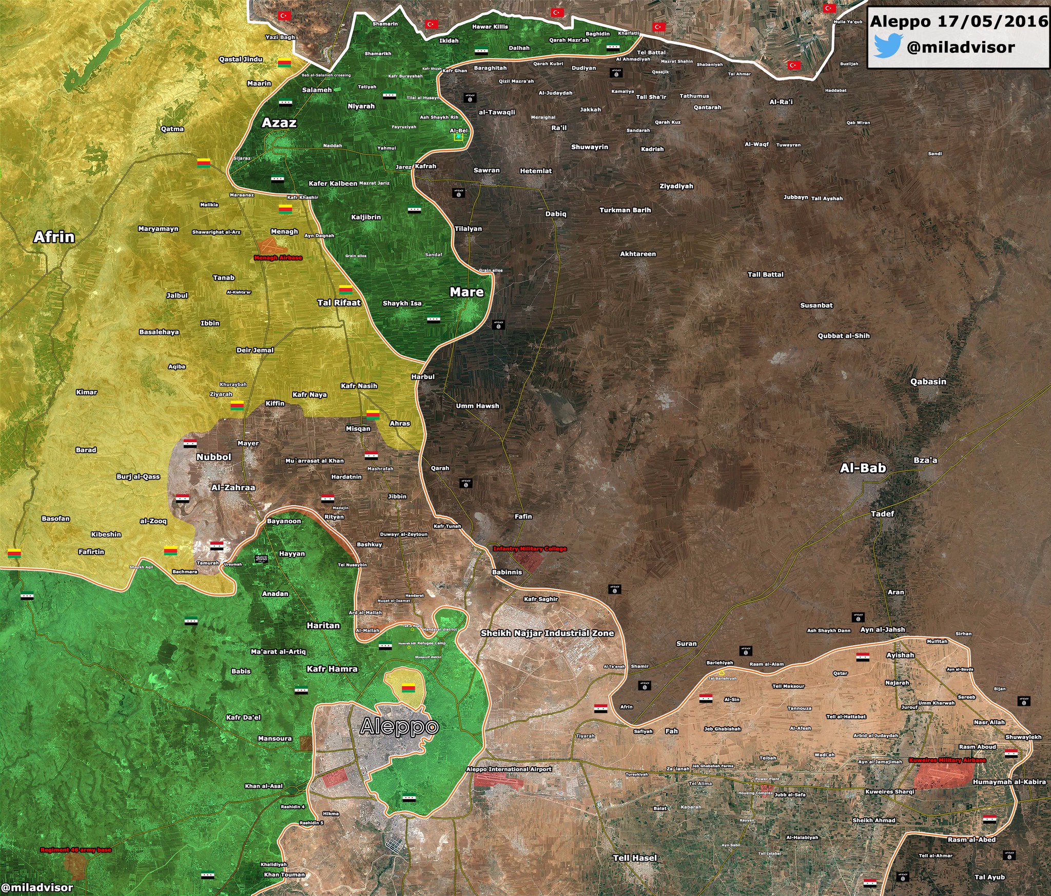 Карта северной части провинции Алеппо на 17 мая 2016 года: