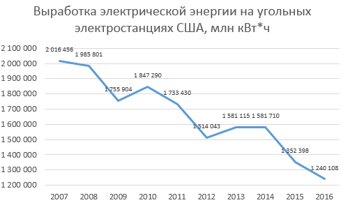 Данные по добыче полезных ископаемых, проанализированные The Associated Press, предполагают, что добыча угля в мае 2017 года достигла отметки в 121 млн тонн, что на 6% больше, чем за аналогичный период прошлого года. Особенно драматично победа угольной промышленности выглядит в США, где, как сообщает Министерство энергетики, добыча угля за первые пять месяцев 2017 года выросла на 19%.